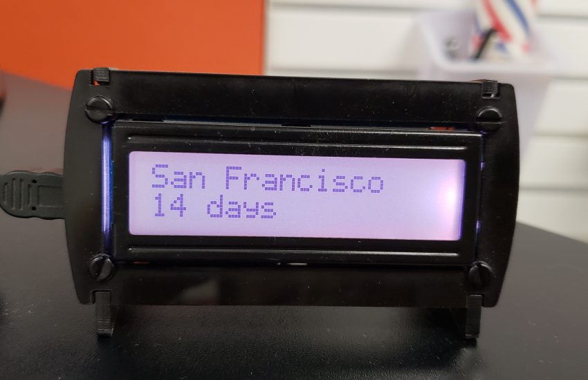 A Node application to count down the days to events on a USB serial LCD display.