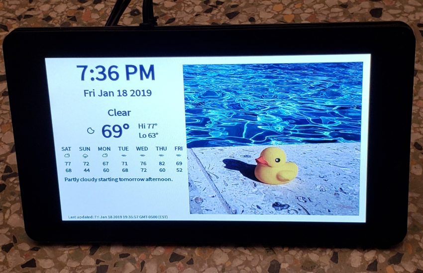A Raspberry Pi project to display the time and weather next to the most recent image from an Instagram feed.