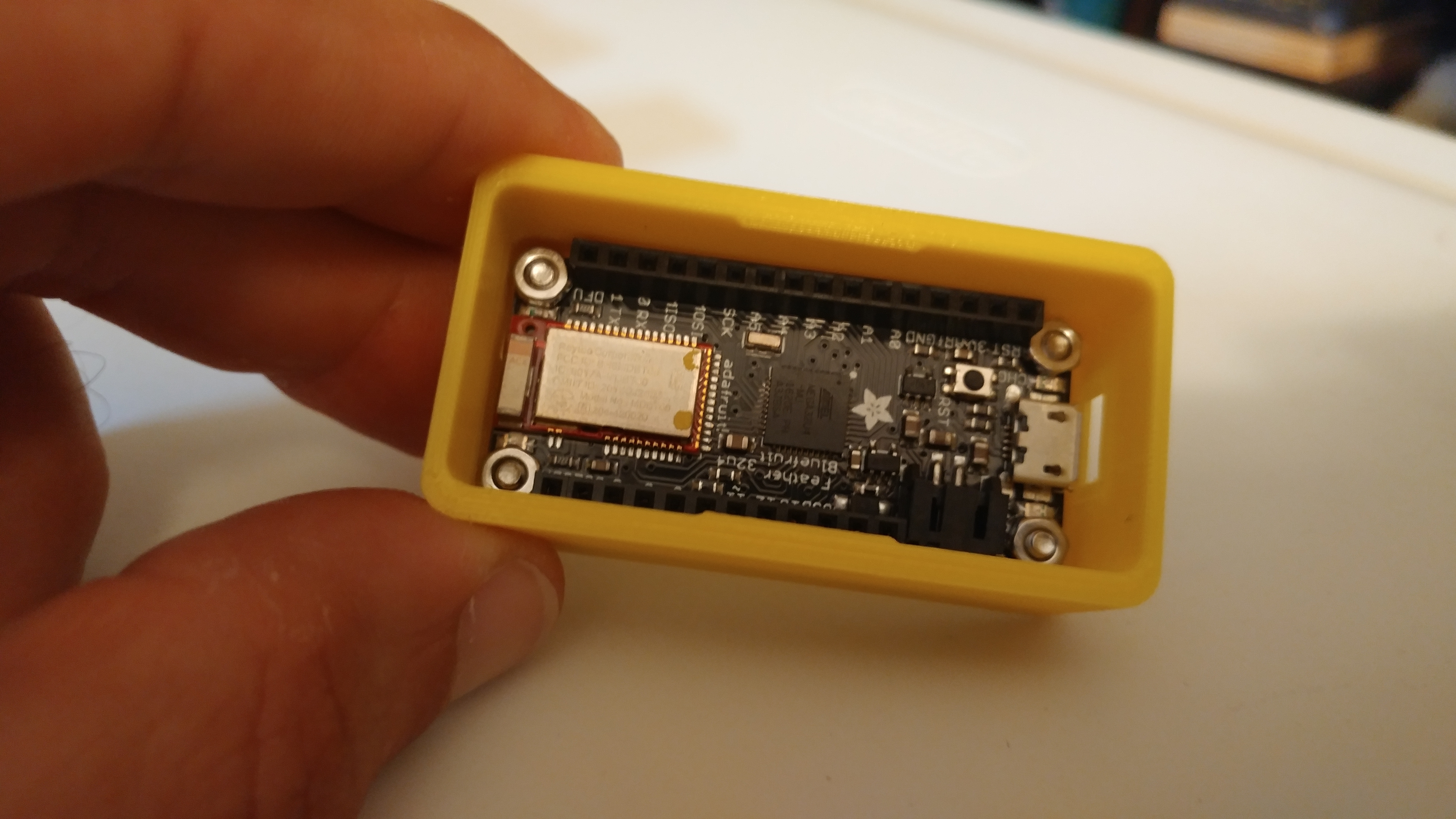 The enclosure will work with the three development boards listed below, as well as other development boards from the Adafruit Feather line.