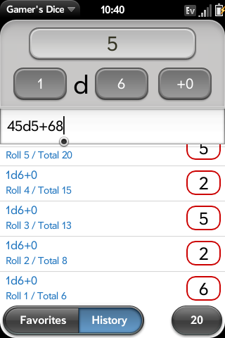Gamer’s Dice keeps a history of the most recent 100 rolls and can group rolls with totals.